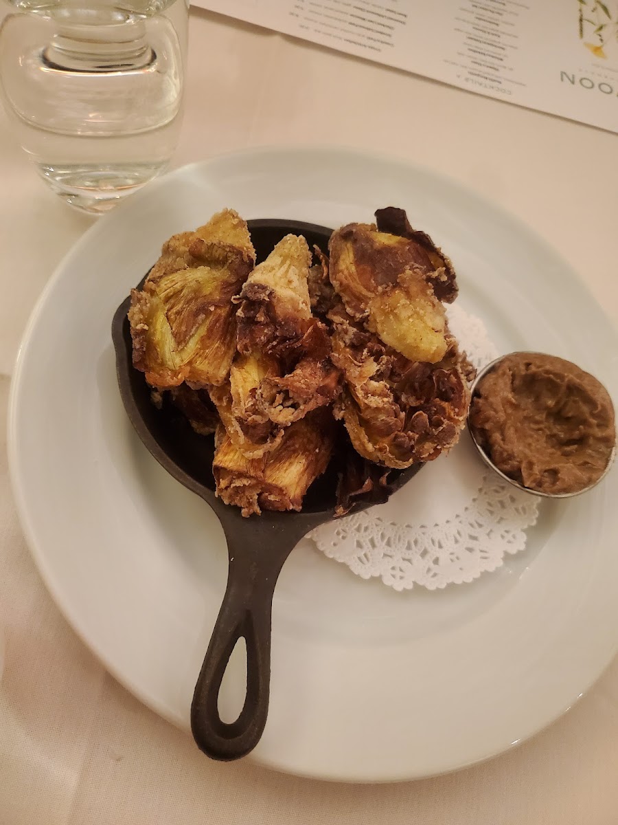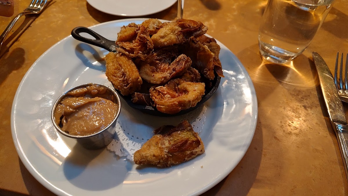 Enjoyed our dinner at Swoon, a longstanding Hudson NY establishment. Service was friendly and attentive. Crispy artichokes were fantastic and bread plate hit all the right notes. Short ribs were pretty good, had some central american spices with nice bright vegetable garnish. Partner had the risotto which was fine, nothing too special. Desserts were great, highlight was a pumpkin flavored pudding. Proved why it has remained in business for all these years!